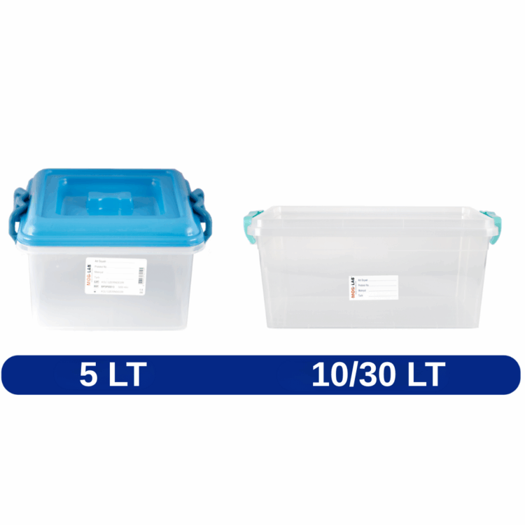 Large-capacity specimen containers made of transparent polypropylene, available in 5 lt, 10 lt, 20 lt, 25 lt, and 30 lt. Ideal for bulk pathological specimen storage. Resistant to formaldehyde and xylene. Label area included.